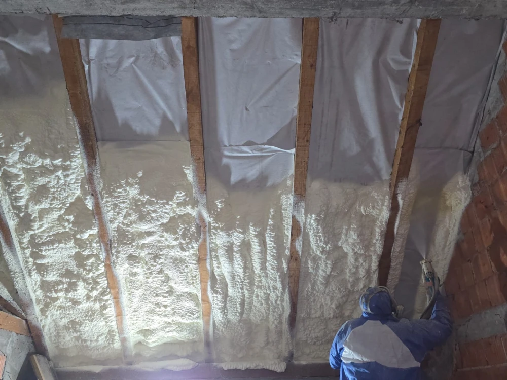 Poliuretanska pena je dvokomponentni materijal koji se prska na površinu, gde ekspandira i stvrdnjava, formirajući bešavni sloj visokoefikasne termo i hidro izolacije.